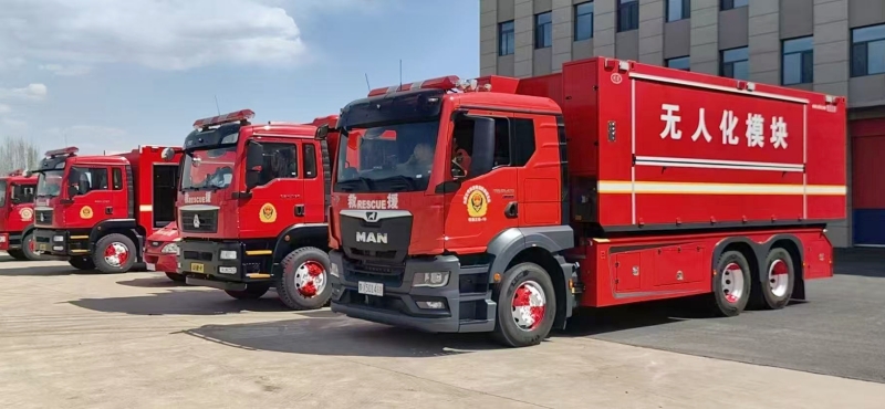 無人機與地面指揮中心實時信息聯動,配套專用消防車作為貯存和供給平臺,適用于高層建筑、化工火災等場景。